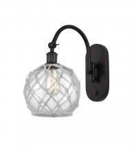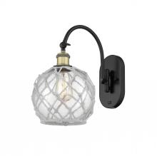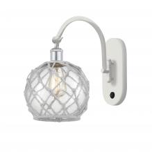 Farmhouse Rope - 1 Light - 8 inch - Antique Brass - White Glass with Brown Rope Shade - Adjustable Swing Arm
