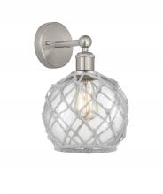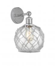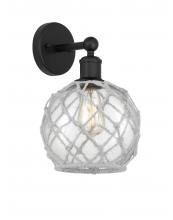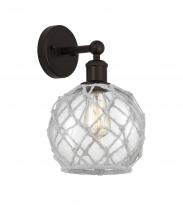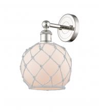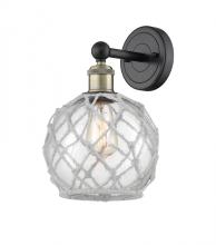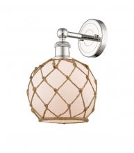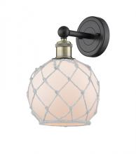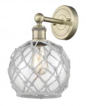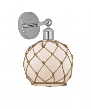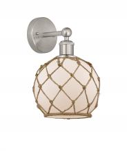Farmhouse Rope - 1 Light - 8 inch - Antique Brass - White Glass with Brown Rope shade - Sconce