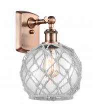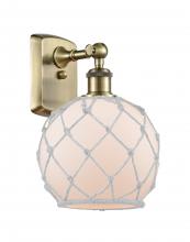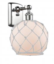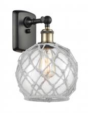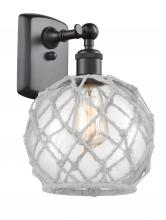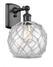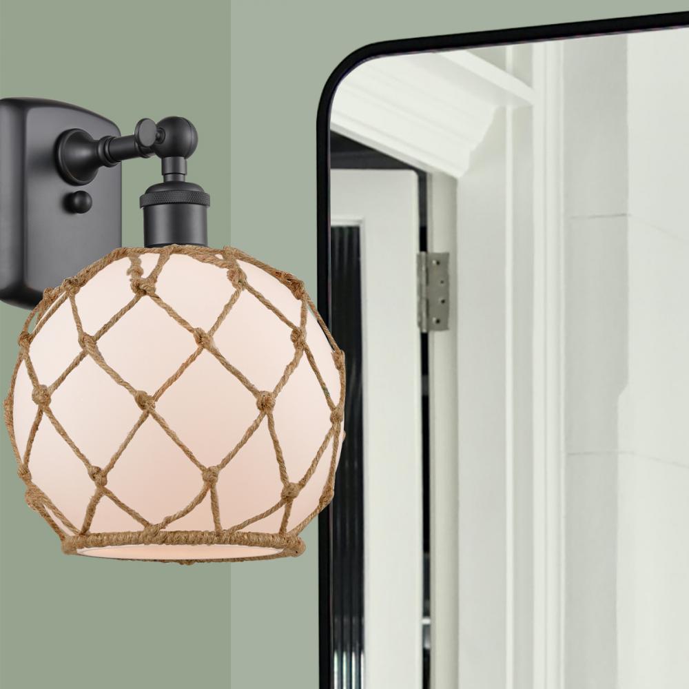 Farmhouse Rope - 1 Light - 8 inch - Matte Black - White Glass with Brown Rope Shade - Sconce