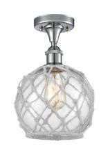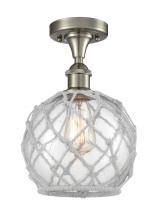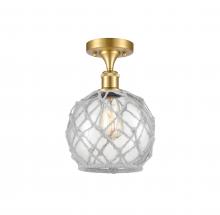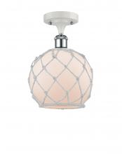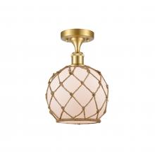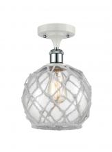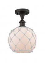 Farmhouse Rope - 1 Light - 8 inch - Matte Black - White Glass with Brown Rope Shade - Semi-Flush Mount