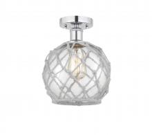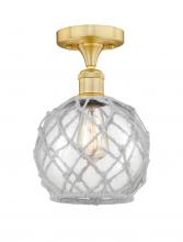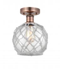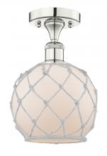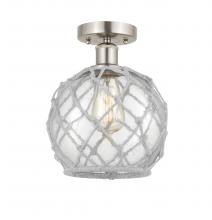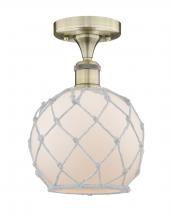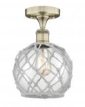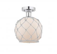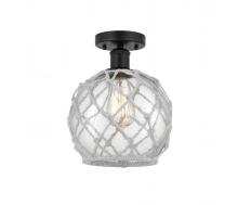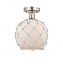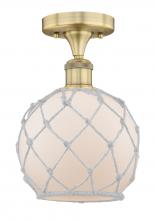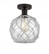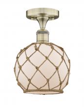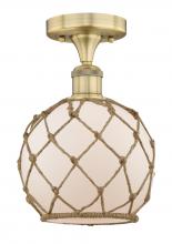 Farmhouse Rope - 1 Light - 8 inch - Matte Black - White Glass with Brown Rope Shade - Semi-Flush Mount