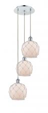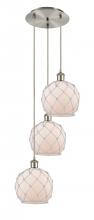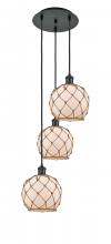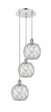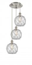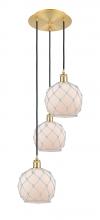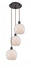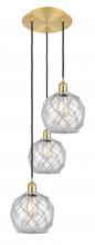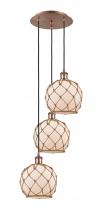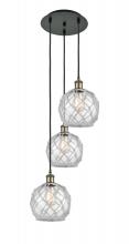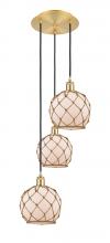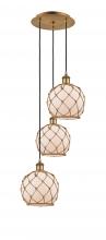 Farmhouse Rope - 3 Light - 15 inch - Antique Brass - White Glass with Brown Rope shade - Cord Hung - Multi Pendant
