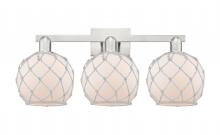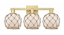Farmhouse Rope - 3 Light - 27 inch - Antique Brass - White Glass with Brown Rope shade - Bath Vanity Light