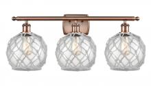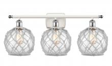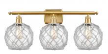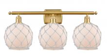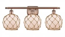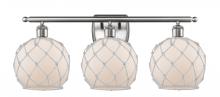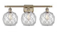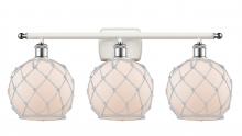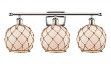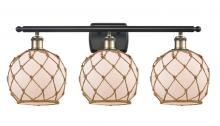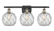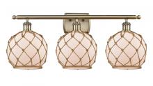 Farmhouse Rope - 3 Light - 28 inch - Matte Black - White Glass with Brown Rope Shade - Bath Vanity Light