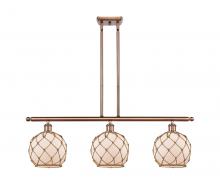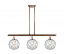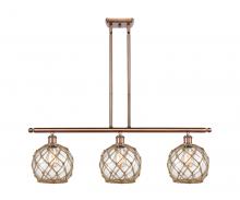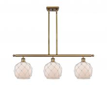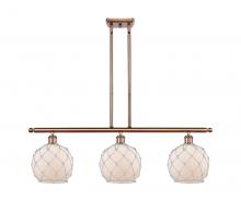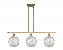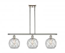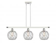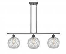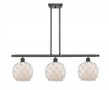 Farmhouse Rope - 3 Light - 36 inch - Matte Black - White Glass with Brown Rope Shade - Stem hung - Island Light