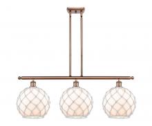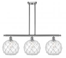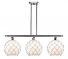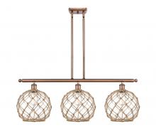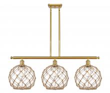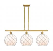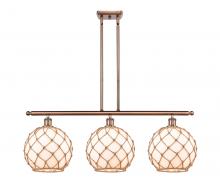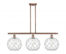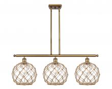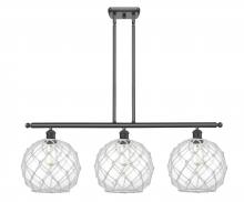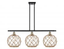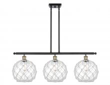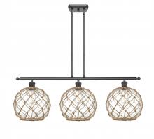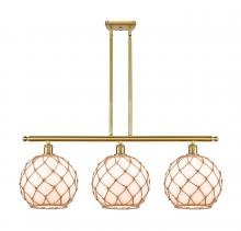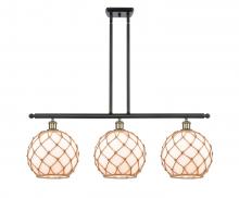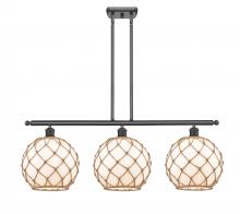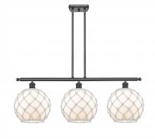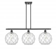 Farmhouse Rope - 3 Light - 37 inch - Matte Black - White Glass with Brown Rope Shade - Stem hung - Island Light