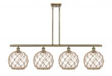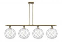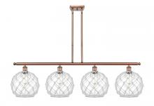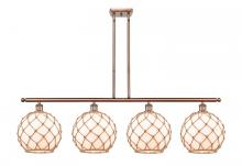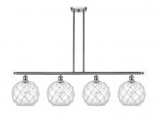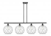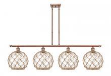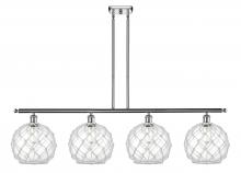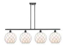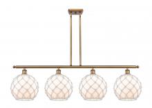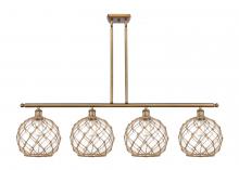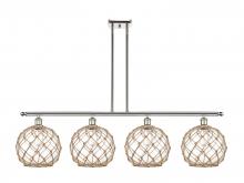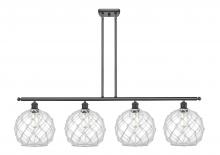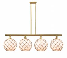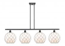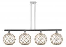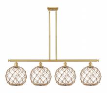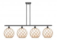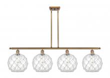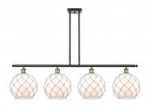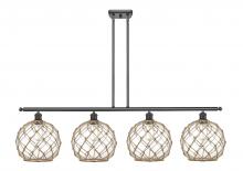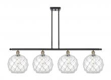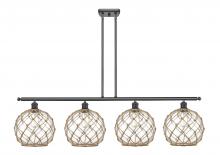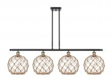 Farmhouse Rope - 4 Light - 48 inch - Matte Black - White Glass with Brown Rope Shade - Stem hung - Island Light
