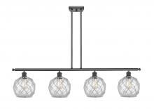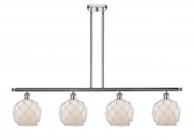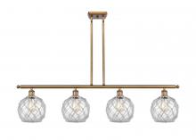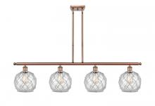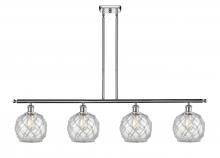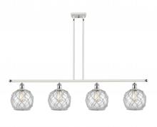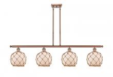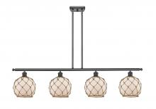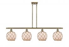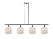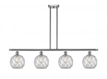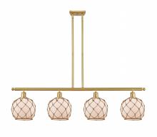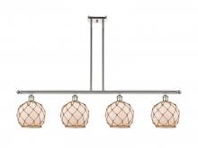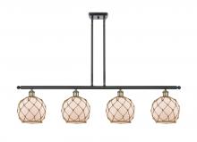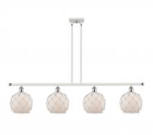Farmhouse Rope - 4 Light - 48 inch - Matte Black - White Glass with Brown Rope Shade - Stem hung - Island Light