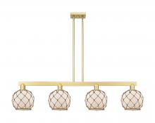 Farmhouse Rope - 4 Light - 51 inch - Antique Brass - White Glass with Brown Rope shade - Stem hung - Island Light