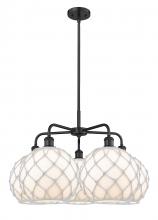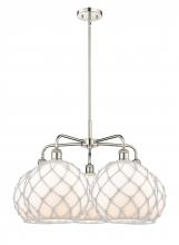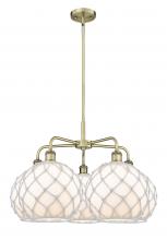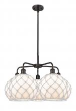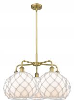 Farmhouse Rope - 5 Light - 29 inch - Antique Brass - Matte White shade - Stem hung - Chandelier