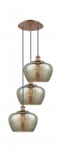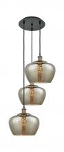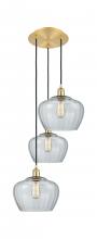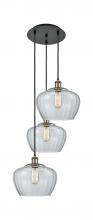 Fenton - 3 Light - 18 inch - Antique Brass - Clear Shade - Cord Hung - Multi Pendant