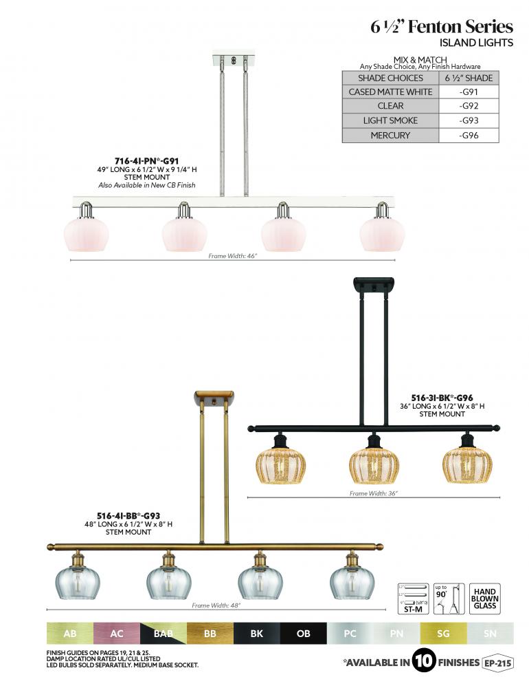Fenton - 4 Light - 48 inch - Polished Chrome - Light Smoke Shade - Stem hung - Island Light