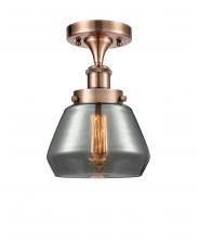 Fulton - 1 Light - 6 inch - Brushed Brass - Smoked Shade - Semi-Flush Mount