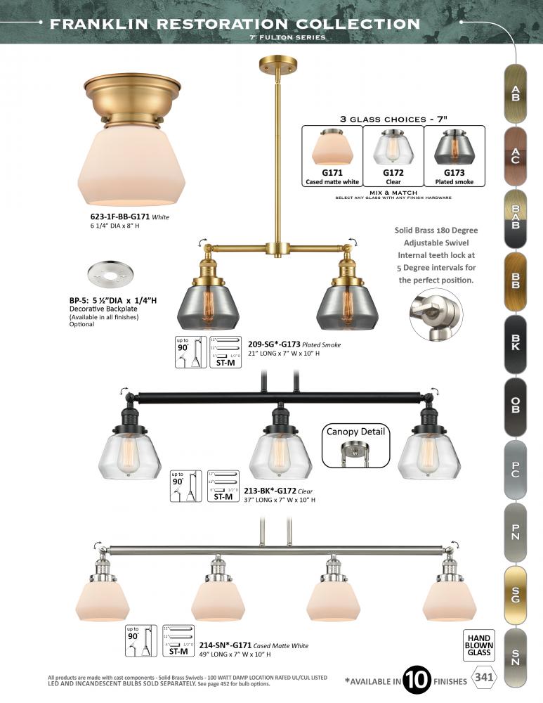 The Franklin Restoration collection is comprised of heavy cast components that give the fixture a heavy Industrial look and feel. We offer the fixture in 10 finishes with a Bare Bulb look or with over 100 possible metal and glass shade options that can cha