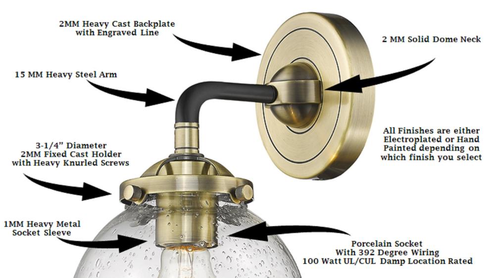 It's all in the details of the Nouveau line. A detailed base with sleek metal arm leads you to an absolutely gorgeous glass bulb that adds an unparalleled flair to any room you place these fixtures.