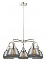 Fulton - 5 Light - 26 inch - Antique Brass - Matte White Shade - Chandelier