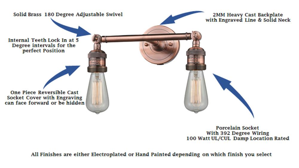 Solid Brass 180 Degree Adjustable Swivels. Fixtures can be hung Horizontally or Vertically.