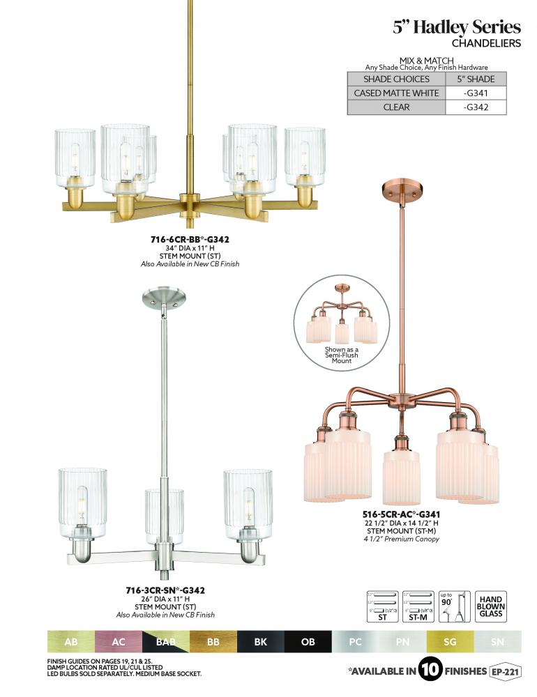 Hadley - 6 Light - 34 inch - Antique Brass - Clear shade - Stem hung - Chandelier