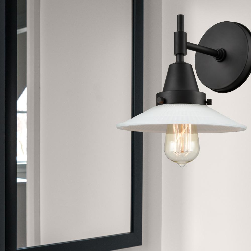 Halophane - 1 Light - 9 inch - Matte Black - Matte White Halophane Shade - Sconce