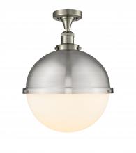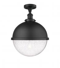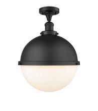 Hampden - 1 Light - 13 inch - Black Antique Brass - Matte Black Hampden 12" with Matte White glass Shade - Semi-Flush Mount