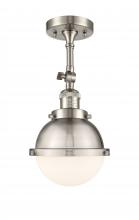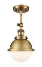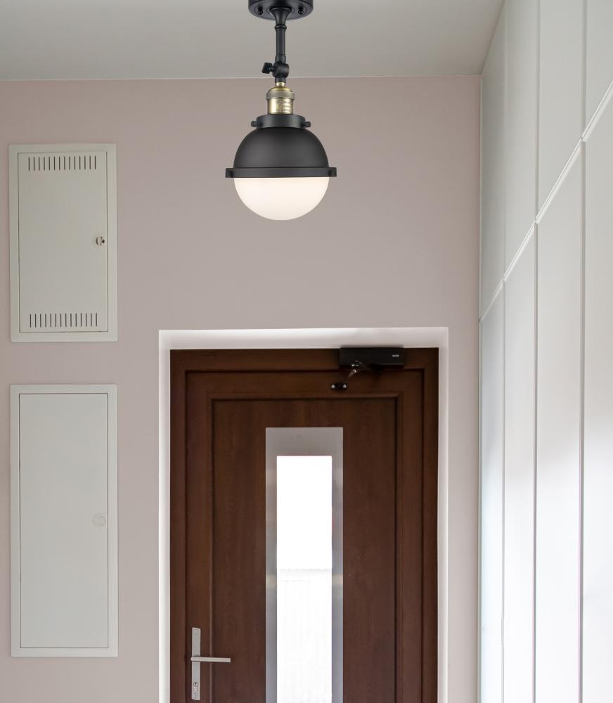 Hampden - 1 Light - 7 inch - Black Antique Brass - Matte Black Hampden 6" with Matte White glass Shade - Adjustable Semi-Flush Mount