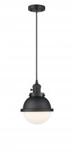 Hampden - 1 Light - 7 inch - Black Antique Brass - Matte Black Hampden 6" with Matte White glass Shade - Cord hung - Mini Pendant