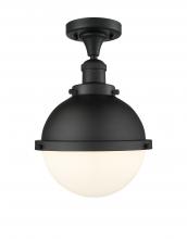 Hampden - 1 Light - 9 inch - Black Antique Brass - Matte Black Hampden 8" with Matte White glass Shade - Semi-Flush Mount