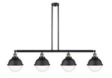 Hampden - 4 Light - 54 inch - Black Antique Brass - Matte Black Hampden 8" with Matte White glass Shade - Stem Hung - Adjustable Island Light