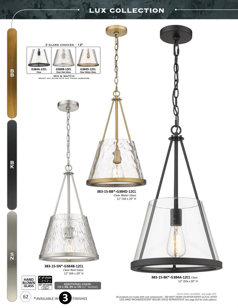 Lux - 1 Light - 12 inch - Brushed Brass - Clear Rain Shade - Chain Hung - Mini Pendant