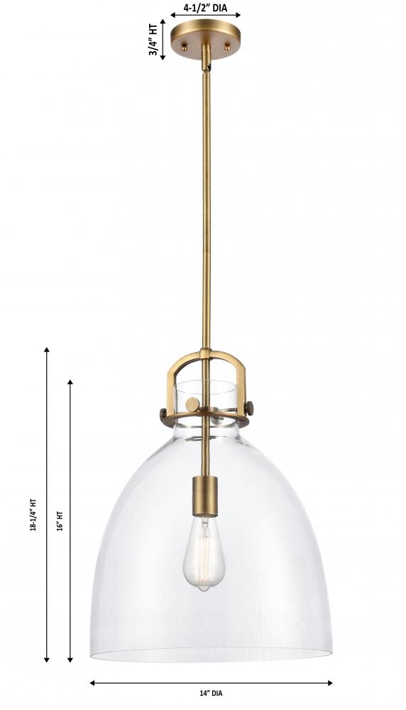 Newton Bell - 1 Light - 14 inch - Brushed Brass - Clear Shade - Pendant