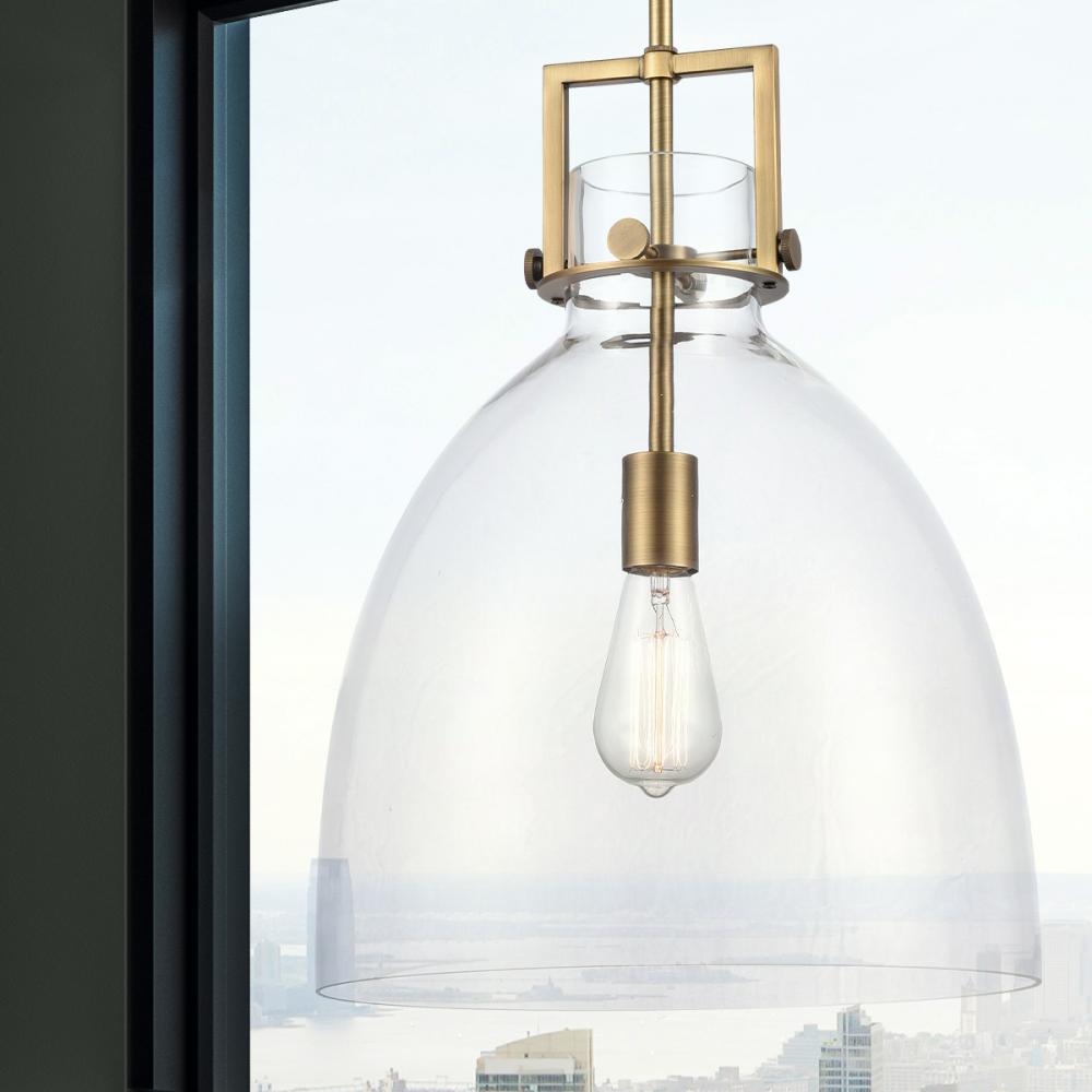 Newton Bell - 1 Light - 14 inch - Brushed Brass - Clear Shade - Pendant
