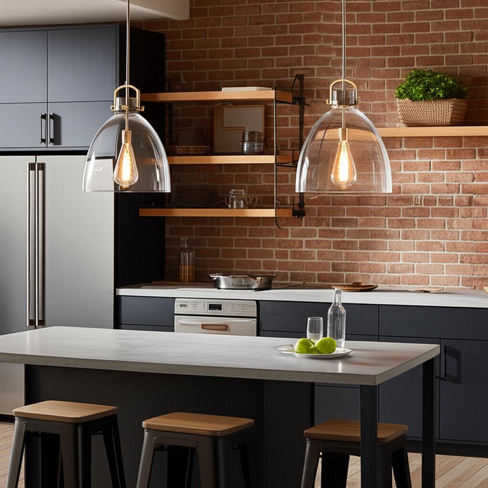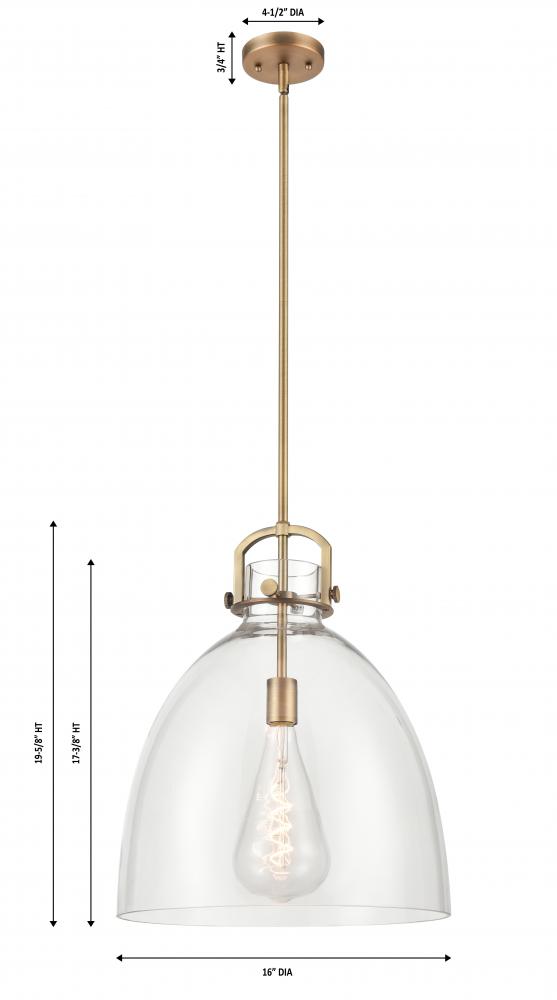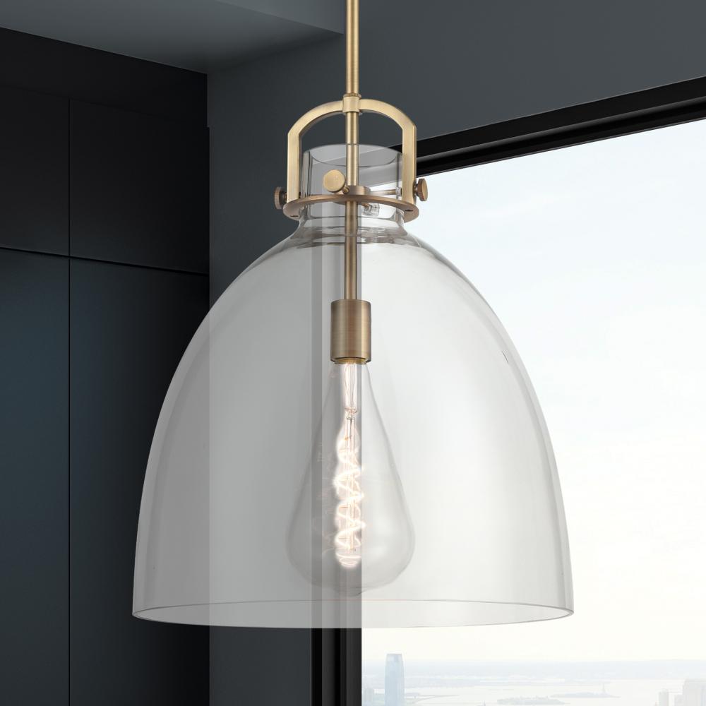 Newton Bell - 1 Light - 16 inch - Brushed Brass - Clear Shade - Pendant