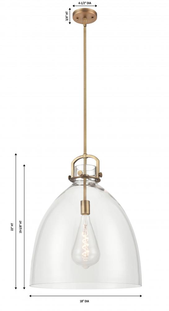 Newton Bell - 1 Light - 18 inch - Brushed Brass - Clear Shade - Pendant