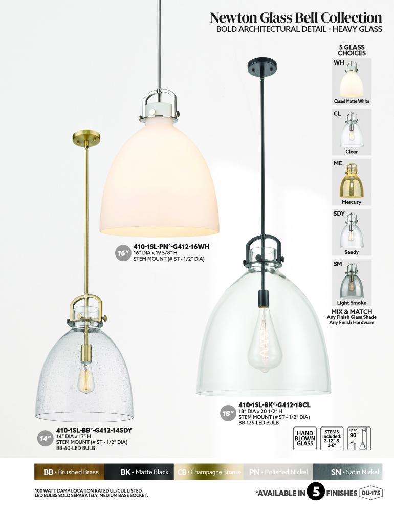 The Newton Bell is a modern industrial collection that incorporates exceptional architectural details and classic bell shaped shade. The delicately curved glass or metal shade complements the clean lines of this restoration inspired line of fixtures. The N