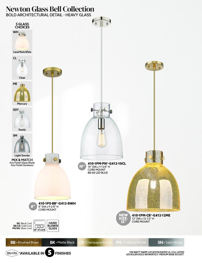The Newton Bell is a modern industrial collection that incorporates exceptional architectural details and classic bell shaped shade. The delicately curved glass or metal shade complements the clean lines of this restoration inspired line of fixtures. The N