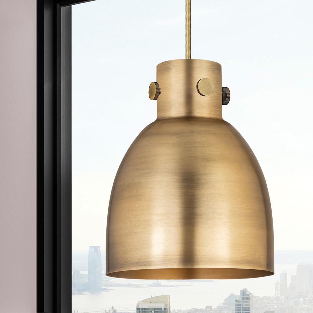 Newton Bell - 1 Light - 8 inch - Brushed Brass - Brushed Brass Shade - Cord hung - Pendant