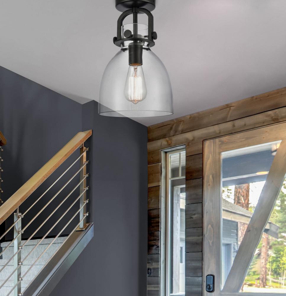 Newton Bell - 1 Light - 8 inch - Matte Black - Clear Shade - Semi-Flush Mount