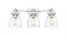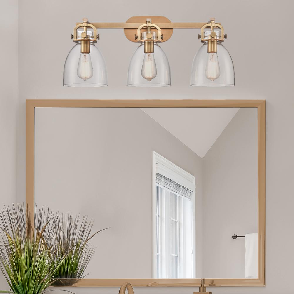 Newton Bell - 3 Light - 27 inch - Brushed Brass - Clear Shade - Bath Vanity Light