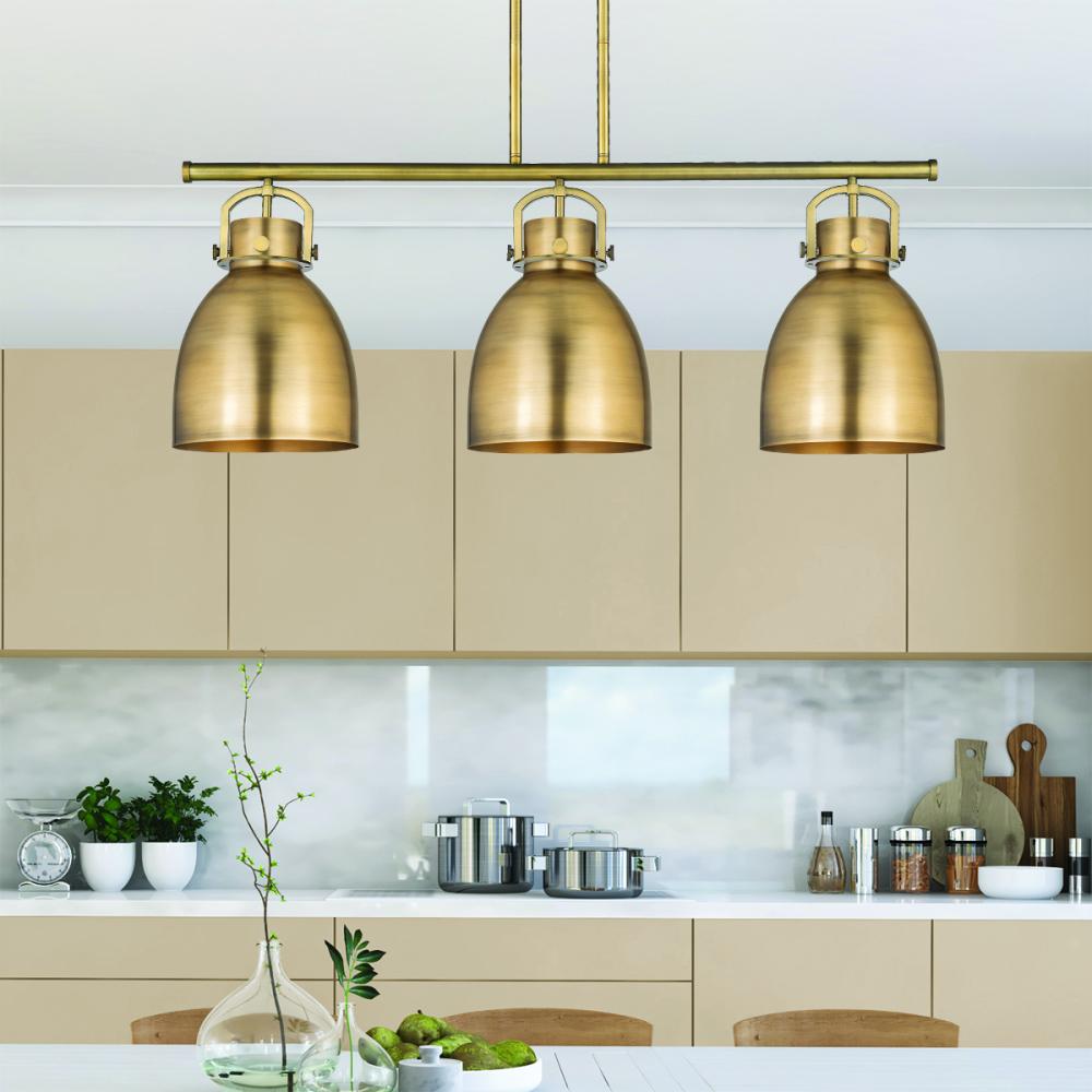 Newton Bell - 3 Light - 42 inch - Brushed Brass - Brushed Brass Shade - Island Light
