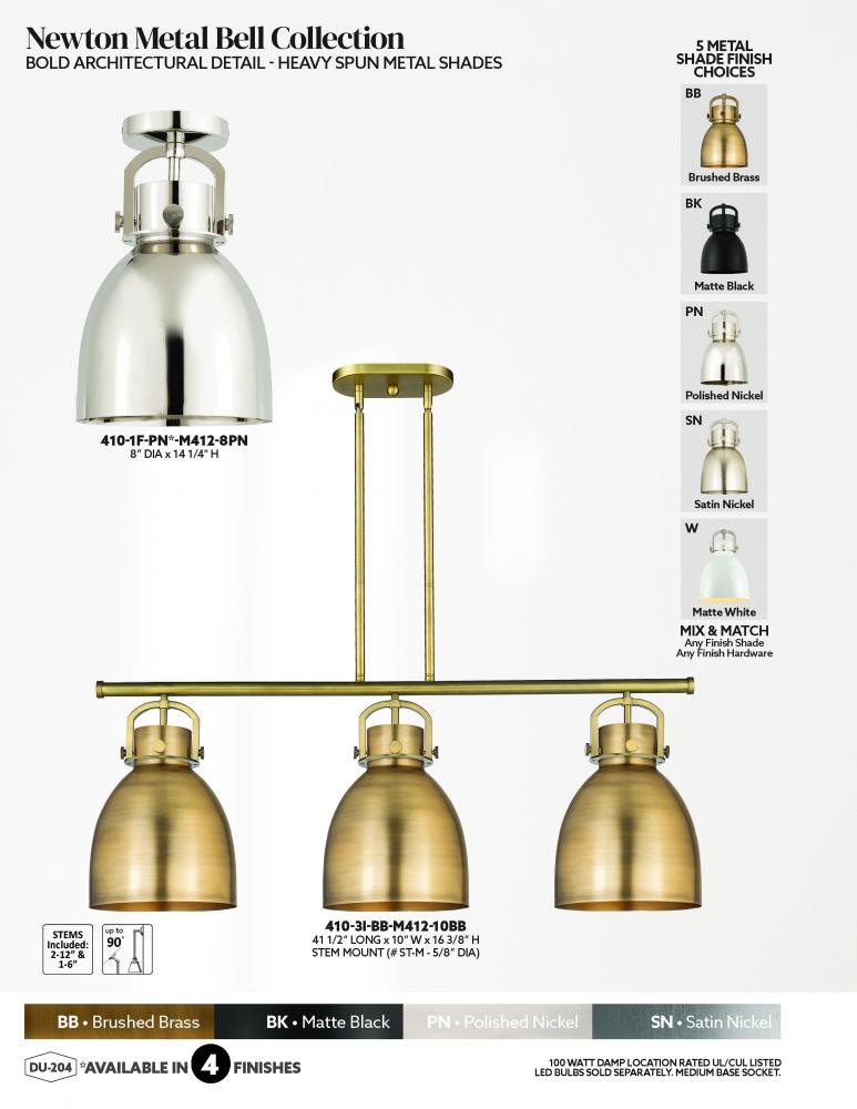 The Newton Bell is a modern industrial collection that incorporates exceptional architectural details with a beautiful globe shaped shade. The iconic Bell shaped shade is available in either glass or heavy spun metal, making this collection perfect for cr