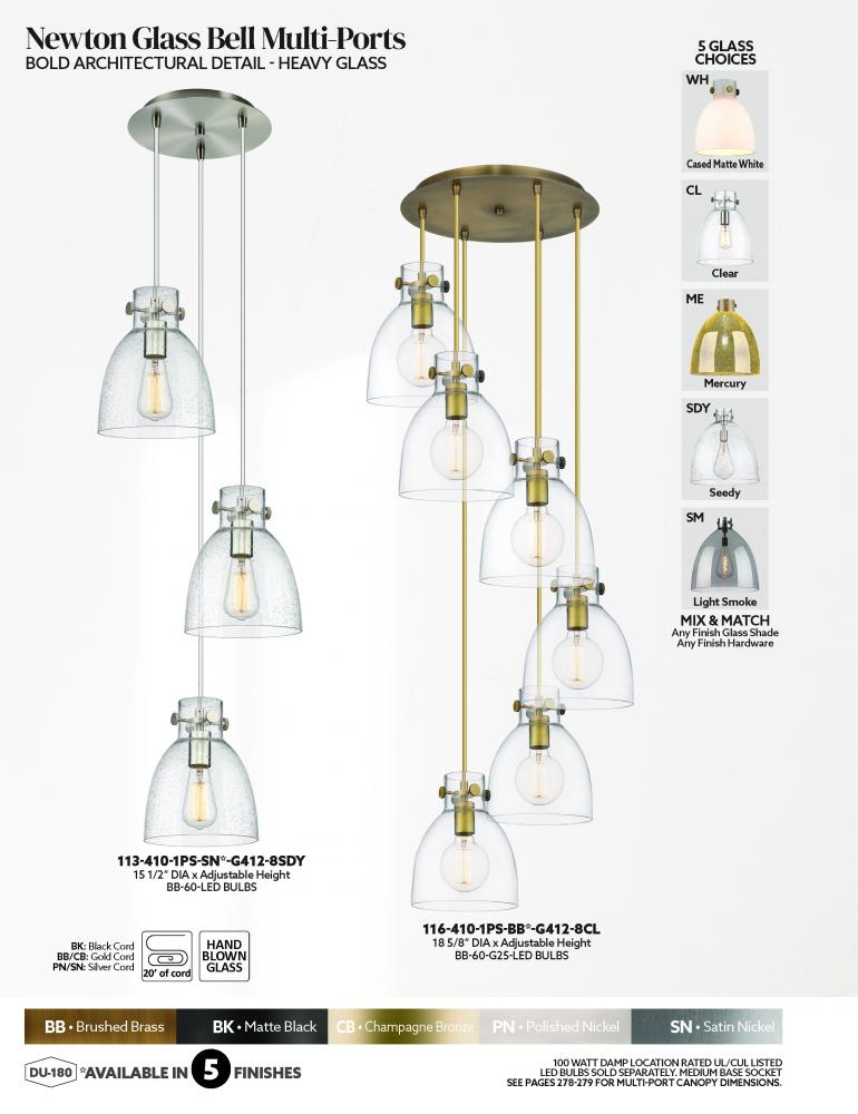 The Newton Bell is a modern industrial collection that incorporates exceptional architectural details and classic bell shaped shade. The delicately curved glass or metal shade complements the clean lines of this restoration inspired line of fixtures. The N