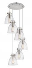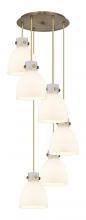 Newton Bell - 6 Light - 19 inch - Brushed Brass - Clear Shade - Multi Pendant