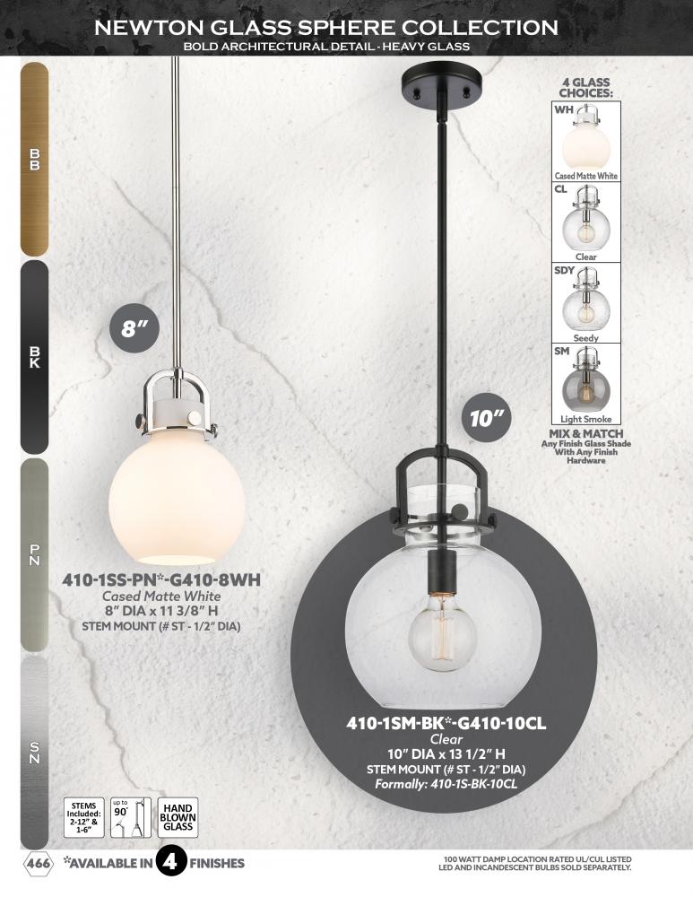 The Newton is a modern industrial collection that incorporates Exceptional architectural details and heavy metal design. These fixtures come together with a cone, bell, or sphere shaped shade, in metal or glass. Making this collection perfect for creating