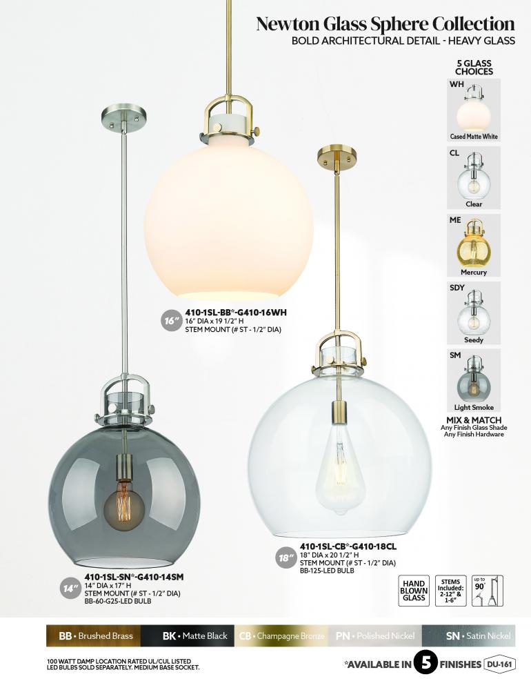 The Newton Sphere is a modern industrial collection that incorporates exceptional architectural details with a beautiful globe shaped shade. The iconic sphere shaped shade is available in either glass or heavy spun metal, making this collection perfect fo