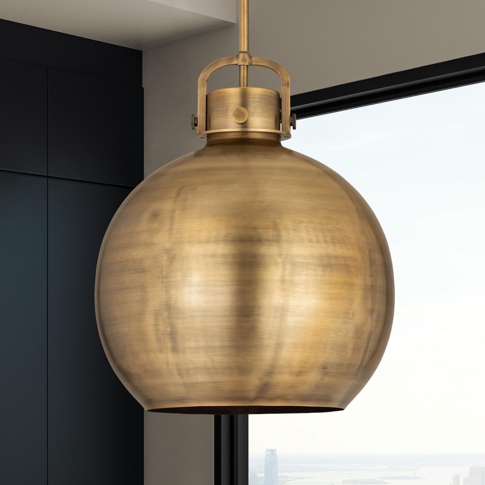 Newton Sphere - 1 Light - 16 inch - Brushed Brass - Brushed Brass Shade - Pendant
