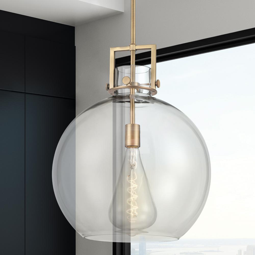 Newton Sphere - 1 Light - 16 inch - Brushed Brass - Clear Shade - Pendant