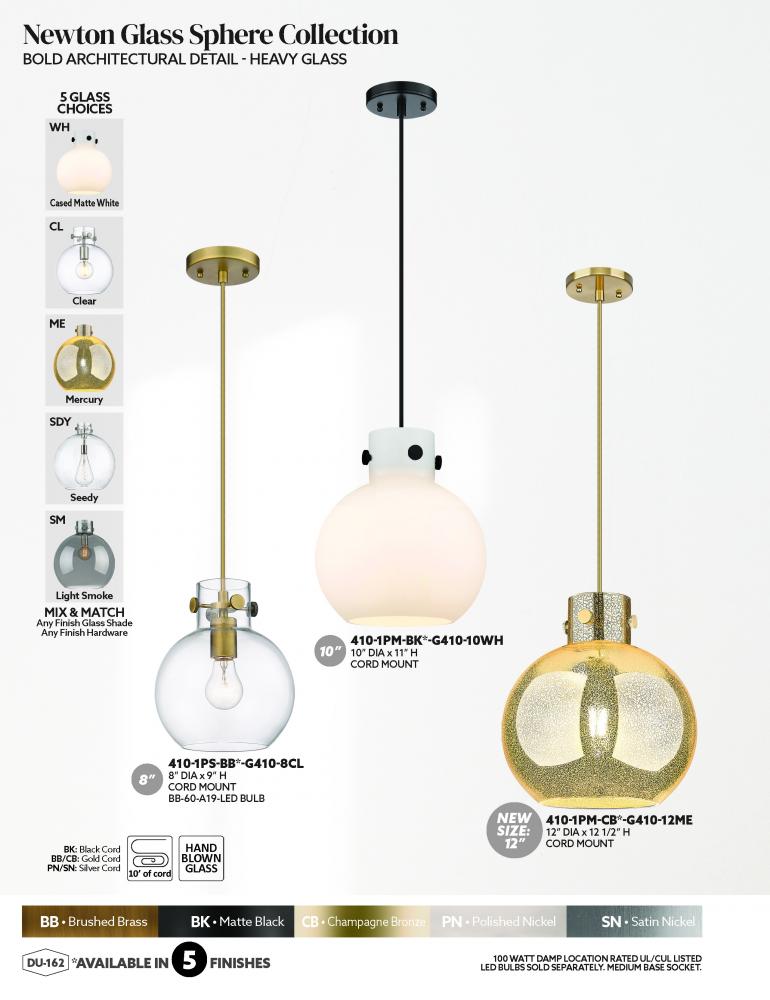 The Newton Sphere is a modern industrial collection that incorporates exceptional architectural details with a beautiful globe shaped shade. The iconic sphere shaped shade is available in either glass or heavy spun metal, making this collection perfect fo