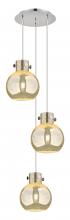 Newton Sphere - 3 Light - 16 inch - Brushed Brass - Clear Shade - Multi Pendant