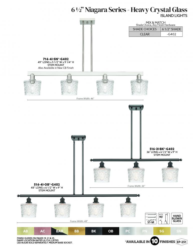 Niagara - 4 Light - 49 inch - Antique Brass - Clear shade - Stem hung - Island Light