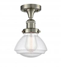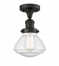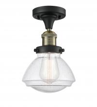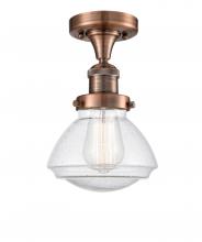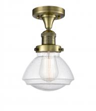 Olean - 1 Light - 7 inch - Antique Brass - Matte White Shade - Semi-Flush Mount